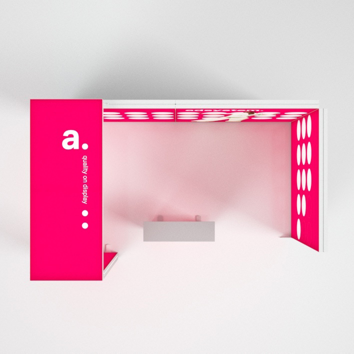 Med tre store 200 x 250 cm lysbokser, to mindre bokser og LED-podiet, danner hele settet en helhetlig og iøynefallende promoteringsoverflate. LED-belysningen sikrer utmerket synlighet av grafikken, også i store og travle lokaler.