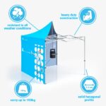 adTent Express Pro beskytter mot værforhold med vanntett stoff som sikrer at regn ikke skader reklame- og markedsføringsmaterialer eller andre gjenstander under teltet.