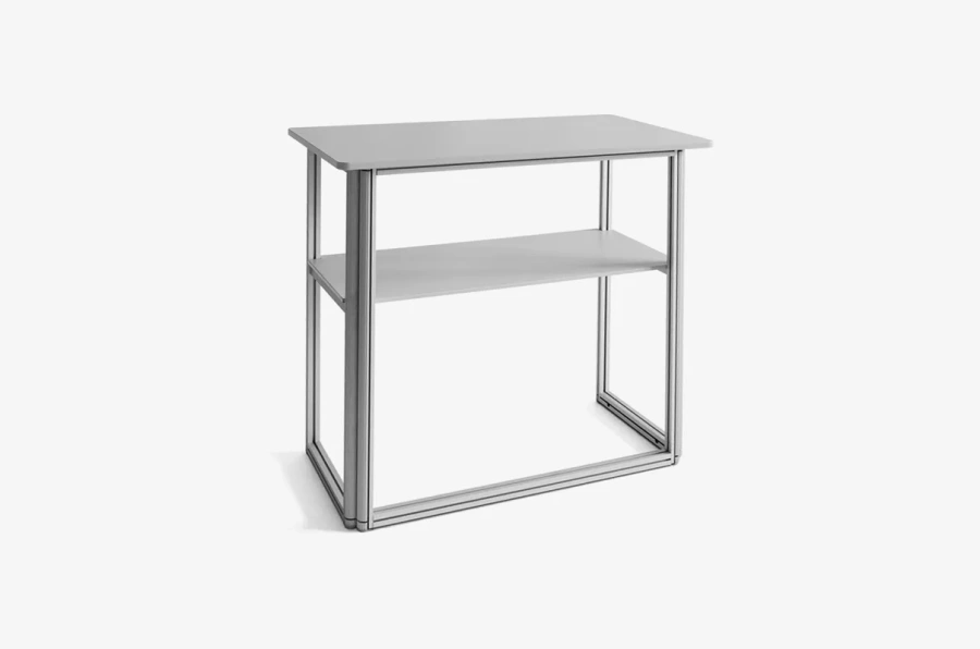 Bordet inkluderer en nedre hylle, perfekt for oppbevaring av reklame- eller personlige eiendeler, slik at arbeidsområdet forblir ryddig. Den romslige bordplaten gir god plass til brosjyrer, flygeblader og annet markedsføringsmateriell.