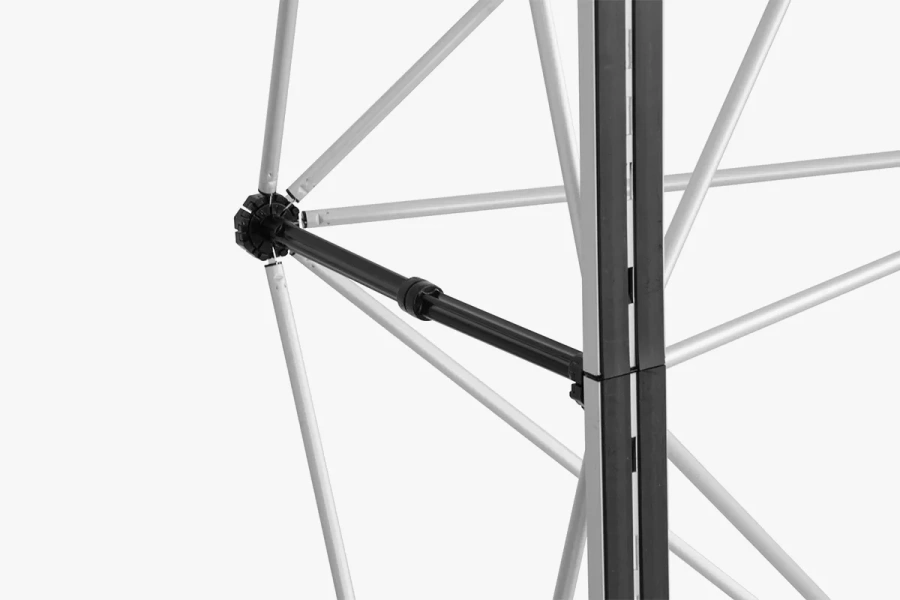 Innovativ konstruksjon: Pop-up reklamevegger kjennetegnes av en selvlåst mekanisme som muliggjør rask montering og demontering av strukturen. Rammen forblir fullt stabil takket være kryssforsterkninger.
