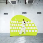 adWall Vario Peak-veggen skiller seg ut med sin unike, dynamiske form som umiddelbart fanger blikket. Den lett buede strukturen skaper et reklameområde hvor du kan sette opp standen din, brosjyrestativ eller promoterte produkter.